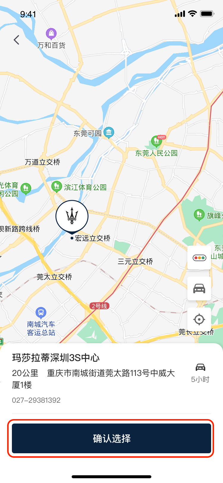 点击“确认选择”后,您选择的首选经销商将展示在APP首页服务与保养模块。