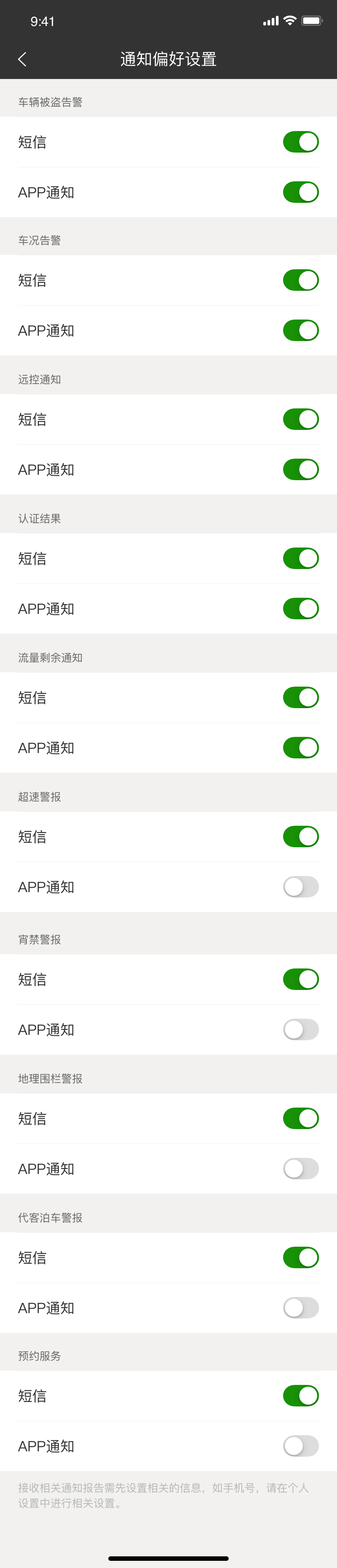 您也可以在“消息首选项”中,通过“预约服务”设置短信和APP通知开关。