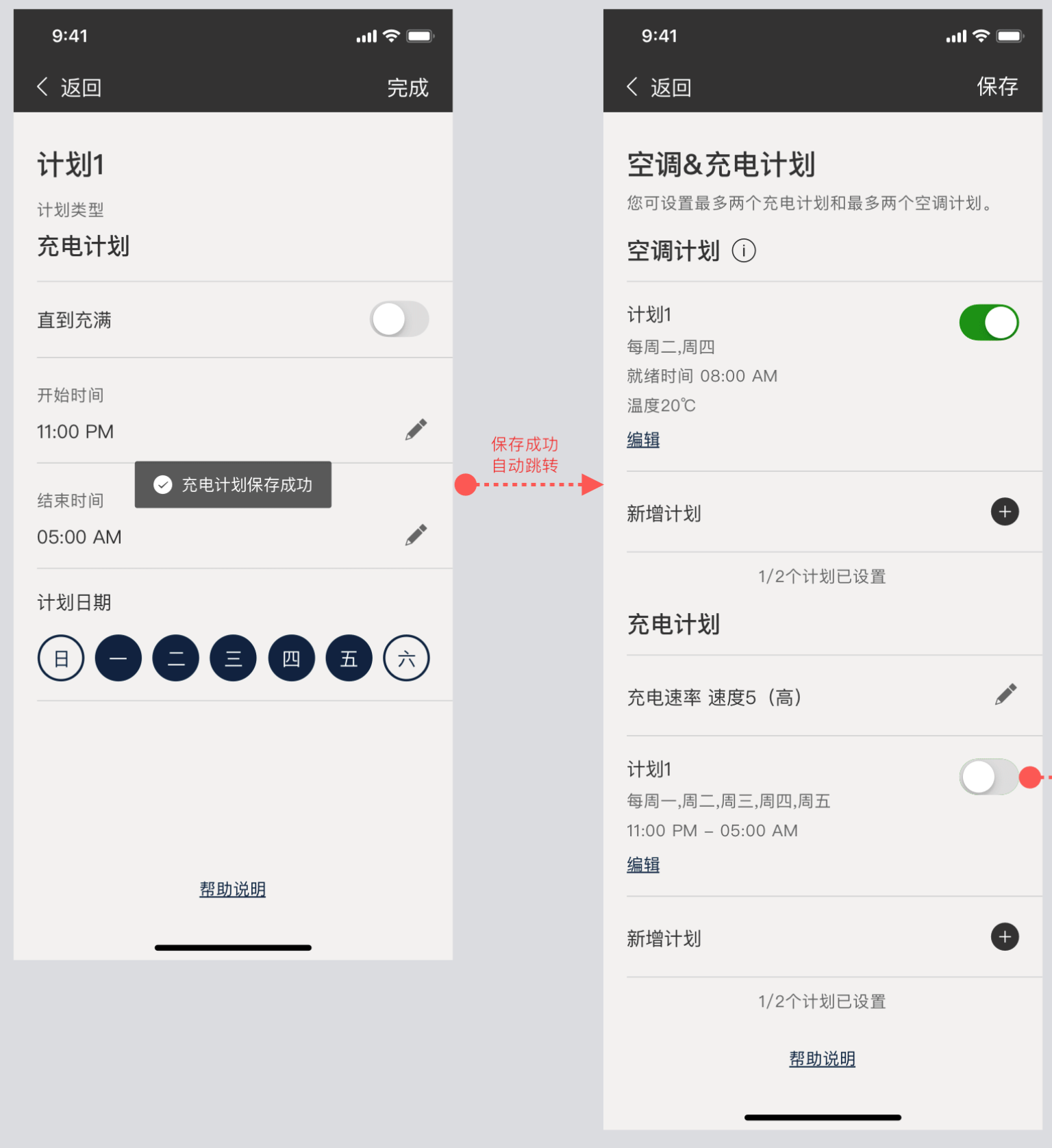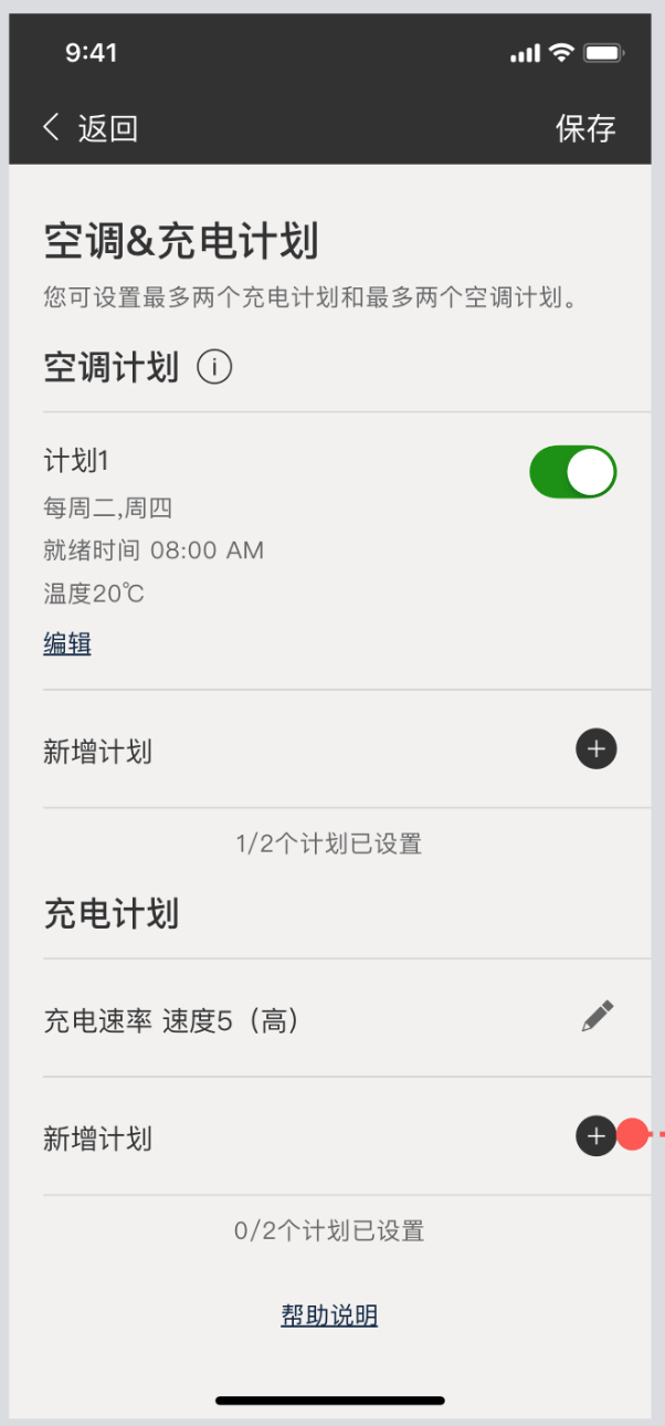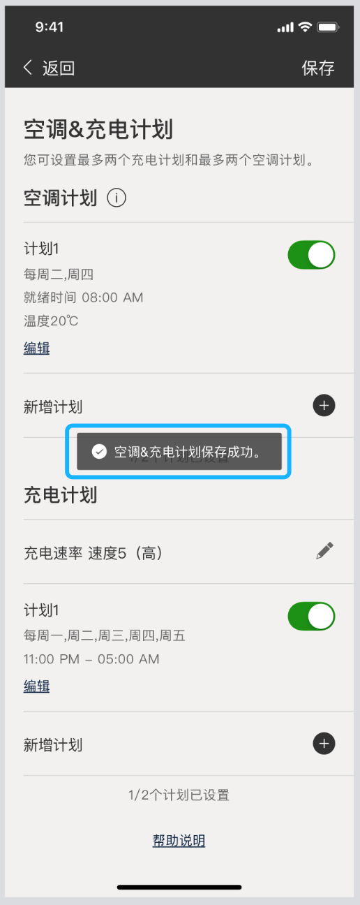 充电计划保存成功后,会自动跳转到【空调&充电计划】列表页;