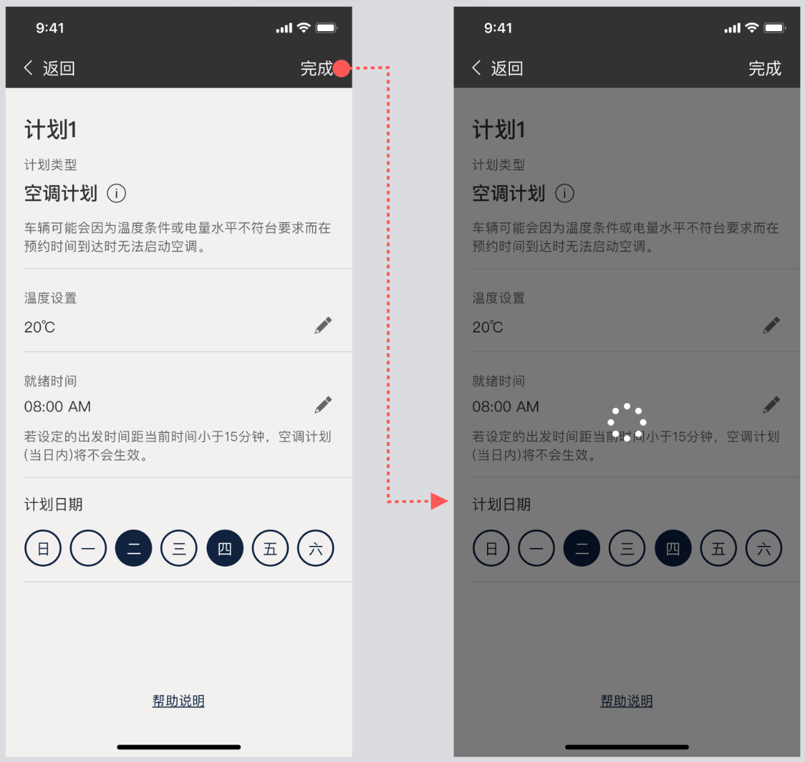 注:您配置的空调计划将会同步到车机端,若同步失败,提示“空调计划保存失败,请重新设置”。