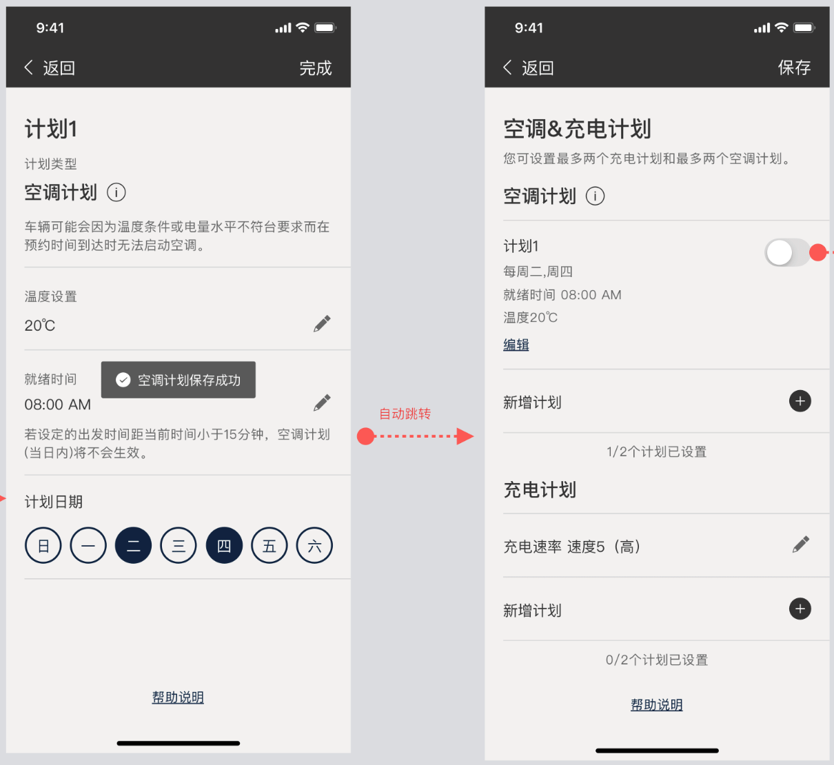 注:您配置的充电计划将会同步到车机端,若同步失败,提示“空调&充电计划保存失败,请重试”。
