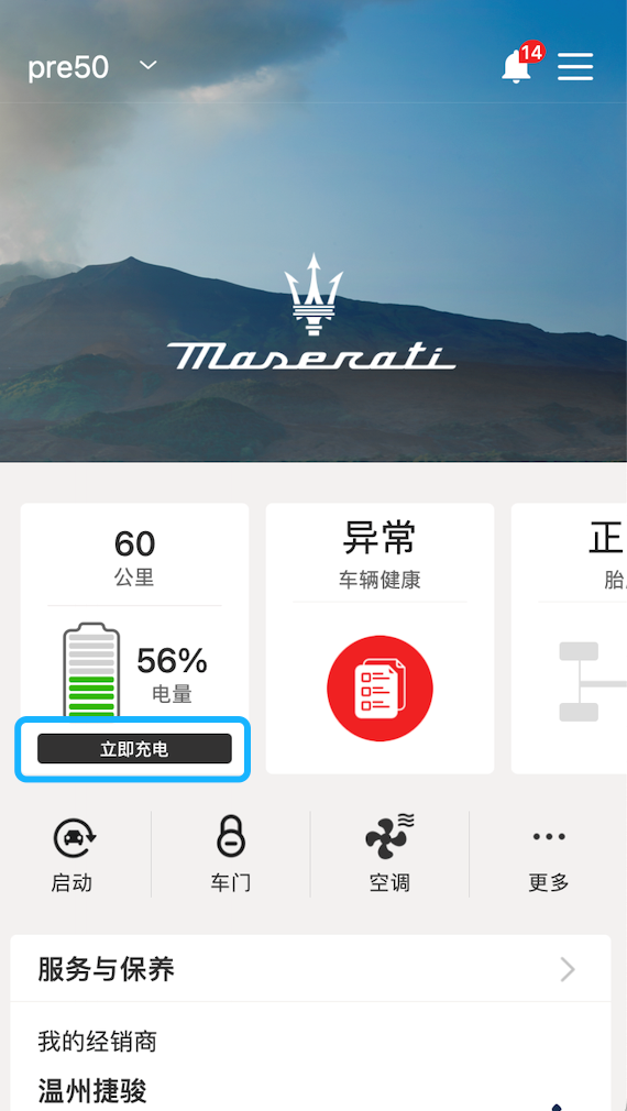 玛莎拉蒂 App端远程立即充电用于充电枪已插入、充电计划已设置且不在当前时间的前提下。建议在车辆熄火、插枪及锁车完成,且观察到仪表和多媒体屏幕均熄屏一分钟后进行操作,以保证车辆进入睡眠状态,否则远程立即充电操作有可能失败。