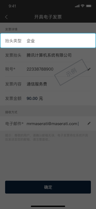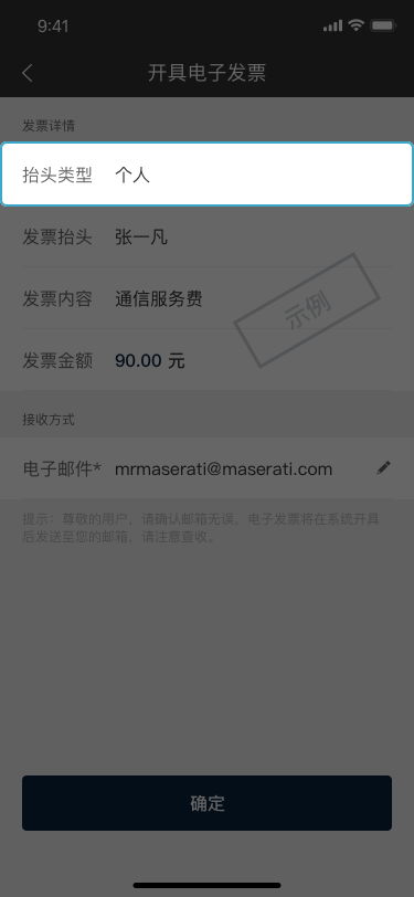 2)根据工信部规定,通讯类发票抬头为该车辆实名认证时指定的个人/企业信息,您无法修改发票抬头信息。