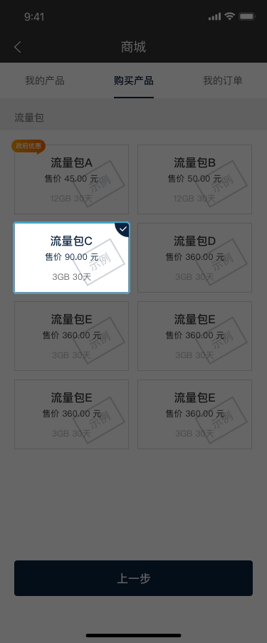 商城内提供多种流量包选择,用户可根据自身业务及使用需求,选择套餐进行购买,购买后的流量将自动叠加至用户所选车辆装载的SIM卡上。